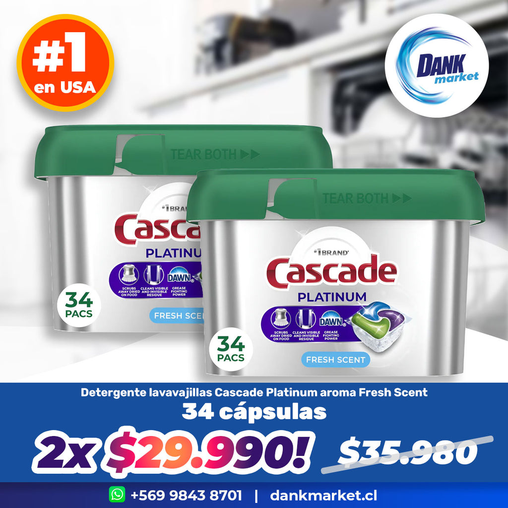 Oferta: Detergente lavavajillas Cascade Platinum Fresh Scent (34 cápsulas ActionPacs). 2x $29.990