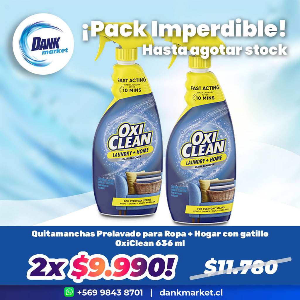 Oferta: Pack Quitamanchas Prelavado para Ropa + Hogar con gatillo OxiClean 636 ml 2x $9.990