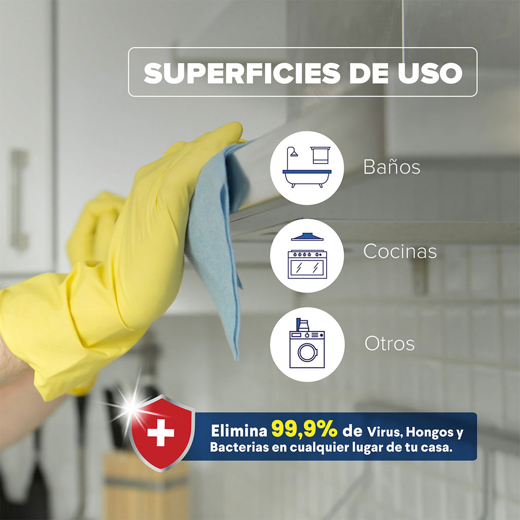 Su fórmula —desarrollada en Nanolab® Chile— utiliza nanocápsulas de aceite de cáscara de naranja y bioamonio cuaternario para eliminar gérmenes sin dejar residuos tóxicos ni aromas sintéticos.